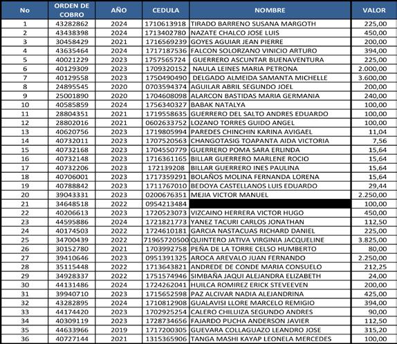 DEMANDADO: HEREDEROS DESCONOCIDOS DE LA CAUSANTE ALEXANDRA PAOLA QUILLUPANGUI PILAGUANO