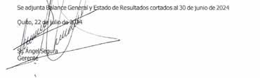 En concordancia con el artículo 119 de la Ley de Compañías, de acuerdo con el Reglamento sobre Juntas Generales o asambleas generales de socios y accionistas de las compañías de responsabilidad limitada, anónimas, en comandita por acciones, de economía mixta y sociedades por acciones simplificadas, y lo que señalan los Art. 19 literales f y j, y el Capítulo Quinto artículos 30 y 31 del Estatuto de la compañía, se convoca a los Socios de CORPORACIÓN SEGURA.S CÍA. LTDA., a junta general Extraordinaria deSocios, que se celebrará el día lunes 5 de agosto de 2024, en las oficinas de la Compañía, ubicada en las calles 10 de agosto N52-15 y Capitán Ramón Borja, sector La Luz a las 10:00Horas, para tratar el siguiente orden del Día: