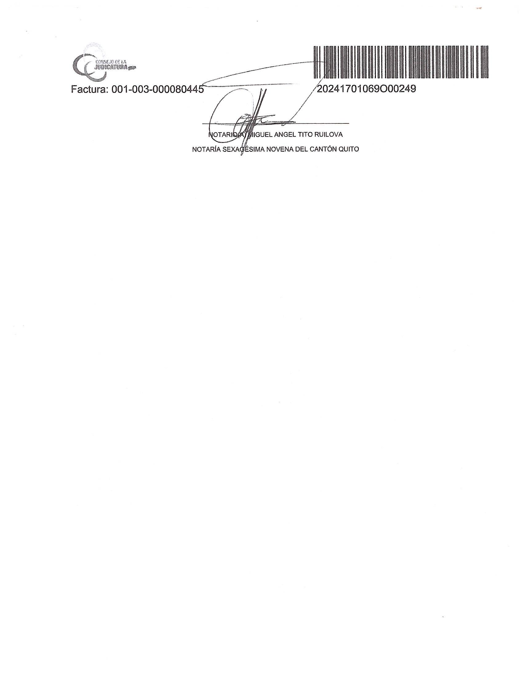 Lo que les comunico y cito para los fines de Ley, previniéndoles de la obligación de señalar Casillero Judicial y/o correo electrónico en esta ciudad de Quito a fin de recibir posteriores notificaciones en la presente causa.