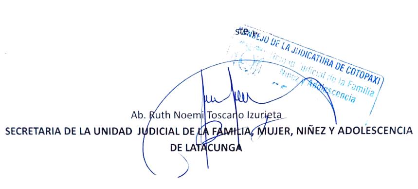 Dependencia: Unidad Judicial de Familia, Mujer, Niñez y Adolescencia con sede en el cantón Latacunga.
