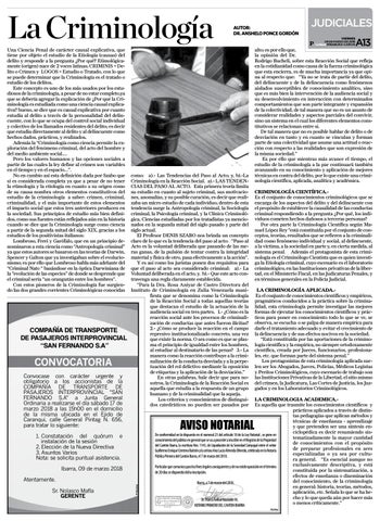 LA CRIMINOLOGIA ACADEMICA.Es aquella que trasmite los conocimientos científicos y prácticos aplicados a través de distintas pedagogías que aplican métodos y técnicas de enseñanza - aprendizaje y que pretenden ser una síntesis enciclopédica es decir resumiendo sisDe conformidad en lo dispuesto en el numeral 23 del artículo 18 de la Ley Notarial , se pone en tematizadamente la mayor cantidad conocimiento del público en general que se va a proceder a inscribir en el Registro de la Propiedad de conocimientos con el propósito del Cantón Ibarra, la escritura Nro. 1143, de Liquidación de la Sociedad Conyugal entre el señor de preparar profesionales en ares Guillermo Enrique Centeno Buitrón y la señora Ana Lucía Almeida Olmedo, celebrada en la Notaría especializadas o ya sea por cultuPública Primera del Cantón Ibarra, el 7 de marzo del 2018. ra general. “Es esencial aunque no exclusivamente descriptiva, y está Particular que comunico para los fines legales consiguientes y de no existir oposición en el término constituida por la sistematización, a de 20 días se dispondrá dicha inscripción. efectos de enseñanza o diseminación del conocimiento, de la criminología Ibarra, a 7 de marzo del 2018. en general: historia, teorías, métodos, aplicación, etc. Señala lo que se ha hecho y lo que queda aún por hacer más Dr. Marco Aníbal Nicolalde M, o menos críticamente.” NOTARIO PRIMERO DEL CANTON IBARRA