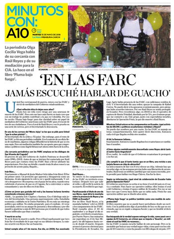 Mientras Usted estuvo en los campamentos en Ecuador, ¿qué activistas de DD.HH. o políticos ecuatorianos visitaban a Reyes? No puedo dar nombres por una razón. En las FARC se maneja un tema: compartimentación. Esto quiere decir discreción. Entonces cada civil que llegaba recibía otro nombre. A Ud. la llamaron Juliana… Exactamente. Entonces cuando llegaban los ecuatorianos se cambiaban el nombre. ¿Cómo alguien metódicamente desconfiado como Reyes abrió tanto el rastro hacia Angostura? Él se confió. Se confió de que el Gobierno ecuatoriano le protegería y no fue así.