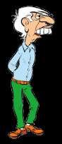 Ungenio Pelo blanco, nariz aguileña y dientes que sobresalen.