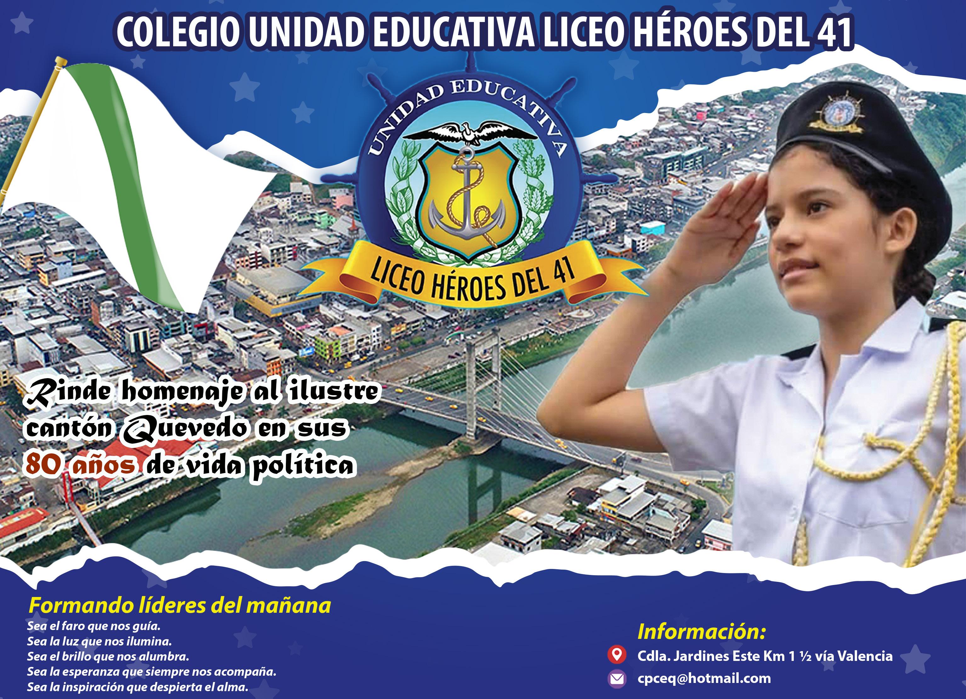 Servir dentro del ámbito educativo a niños, jóvenes y adolescentes de Quevedo y zonas de influencia es el principal objetivo de la Unidad Educativa Liceo ‘Héroes del 41’.