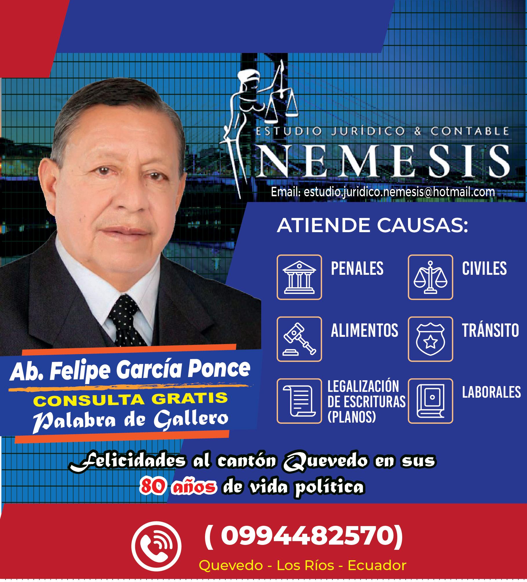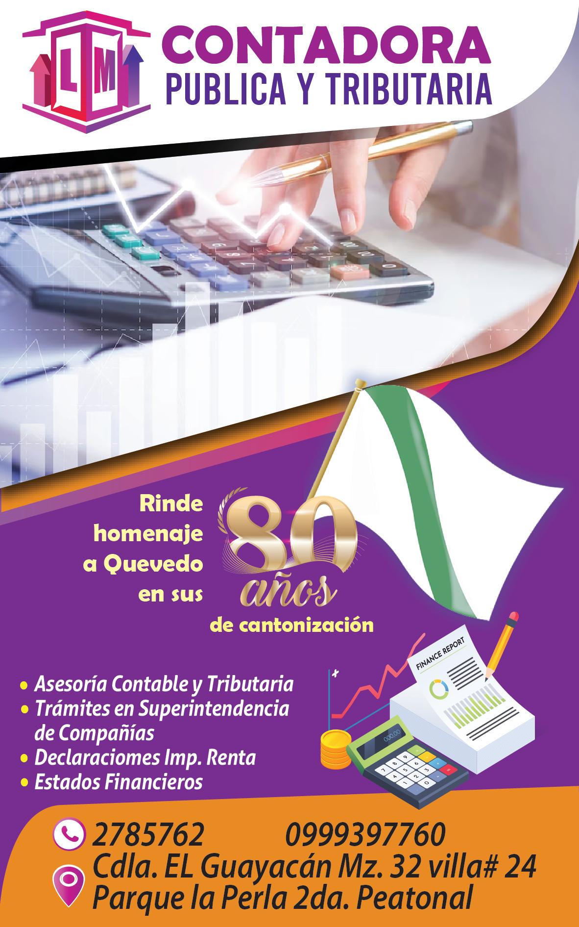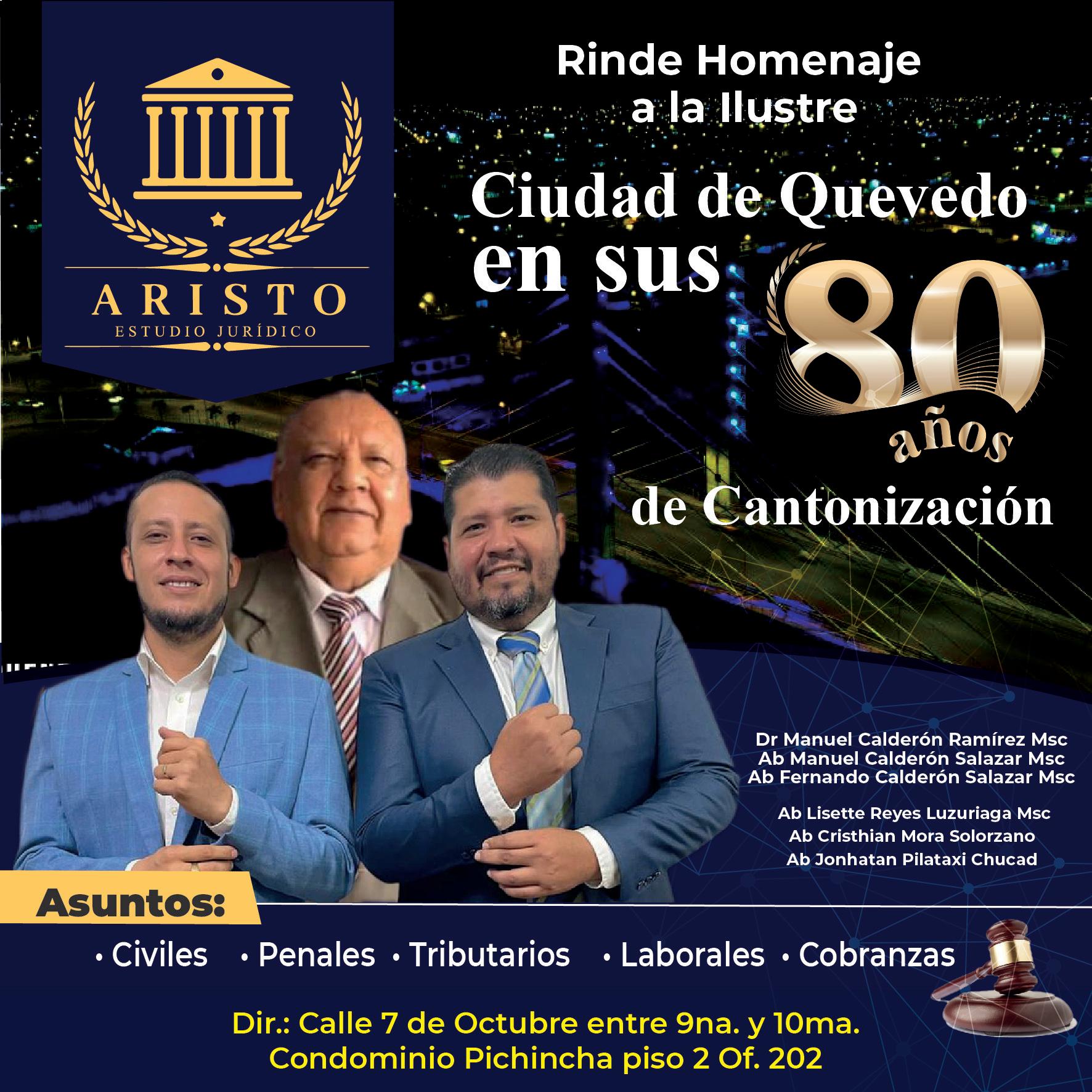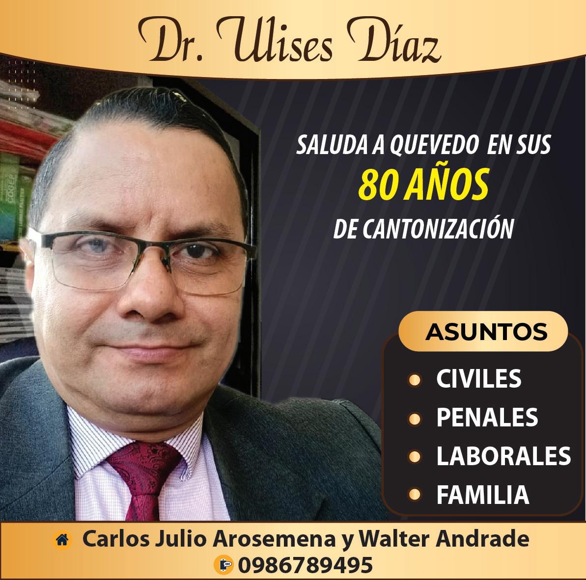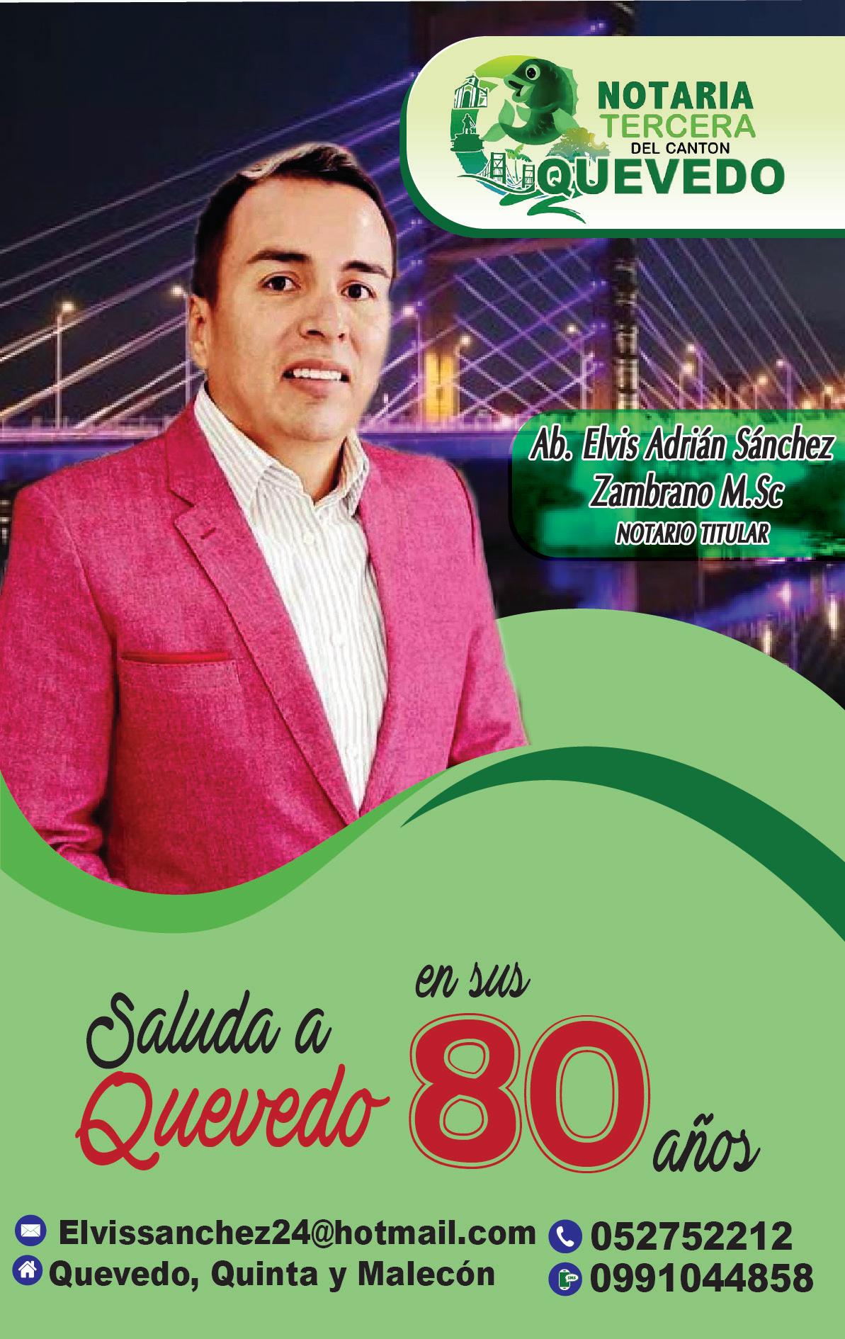 AB. CARLOS DIAZ YEPEZ Dir.: Av. 7 de Octubre entre 2da y 3ra. Cel.: 0993437451 Loor a Quevedo en sus 80 años de cantonización