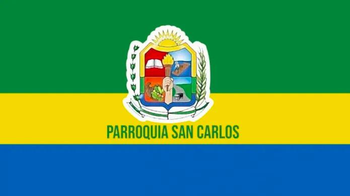 La bandera de la parroquia San Carlos está conformada por tres franjas horizontales, cada una de ellas con los colores: verde, amarillo y celeste en ese orden siendo la franja verde el doble de las otras dos. El verde identifica el campo del territorio, generosidad de la naturaleza que se vuelve motivo supremo de la riqueza agraria. Será el doble de las otras 2 franjas. El amarillo simboliza la riqueza agraria, social y educativa de la parroquia hombres y mujeres que se involucran con entusiasmo en las tareas comunitarias proponiendo en el desarrollo y adelanto de nuestra parroquia; y el celeste se debe al asentamiento de los primeros habitantes San Carlos a orillas del río Quevedo en el sector denominado en ese entonces Carbo Malo y también por los recursos hídricos e ictiológicos.