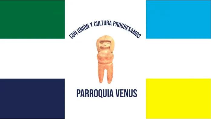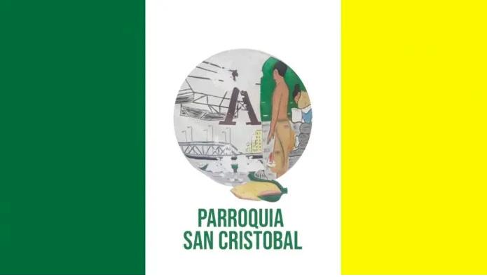 Tiene forma rectangular dividida en cuatro partes iguales por una cruz de color blanca central (pureza espiritual de los hombres y mujeres de la parroquia), cada división tendrá los siguientes colores: verde (riqueza agrícola), celeste cielo (esperanza y el progreso de la comunidad), azul marino (ríos y esteros) y amarillo (el sol que nos cobija).