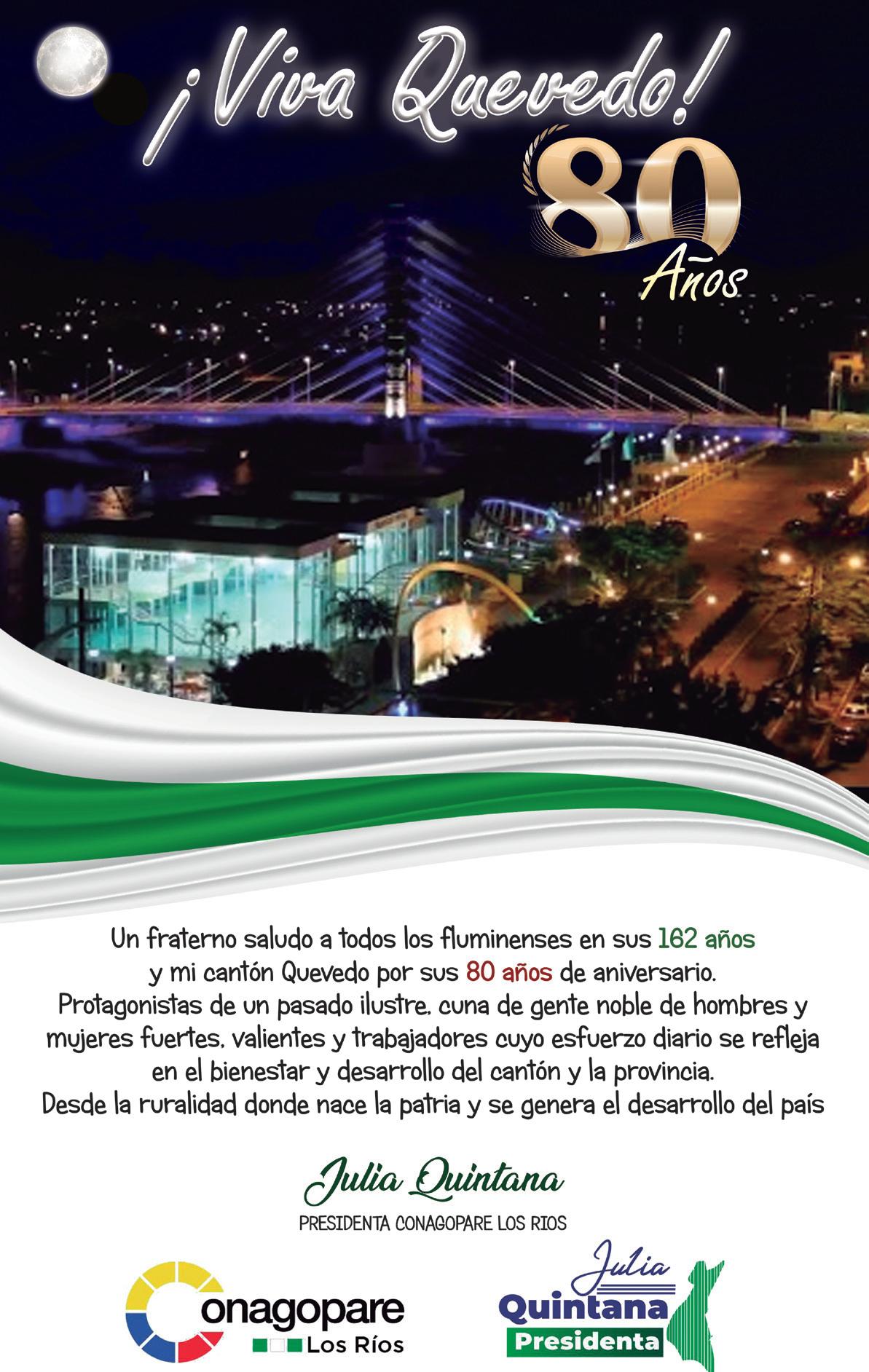 SALUDA A QUEVEDO EN SUS 80 AÑOS DE CANTONIZACIÓN
