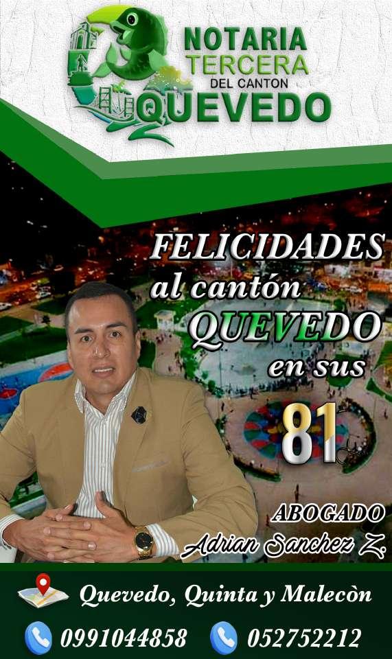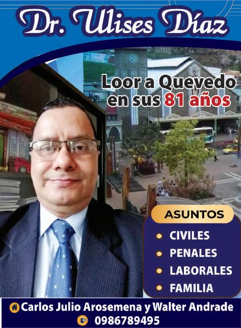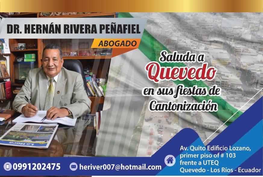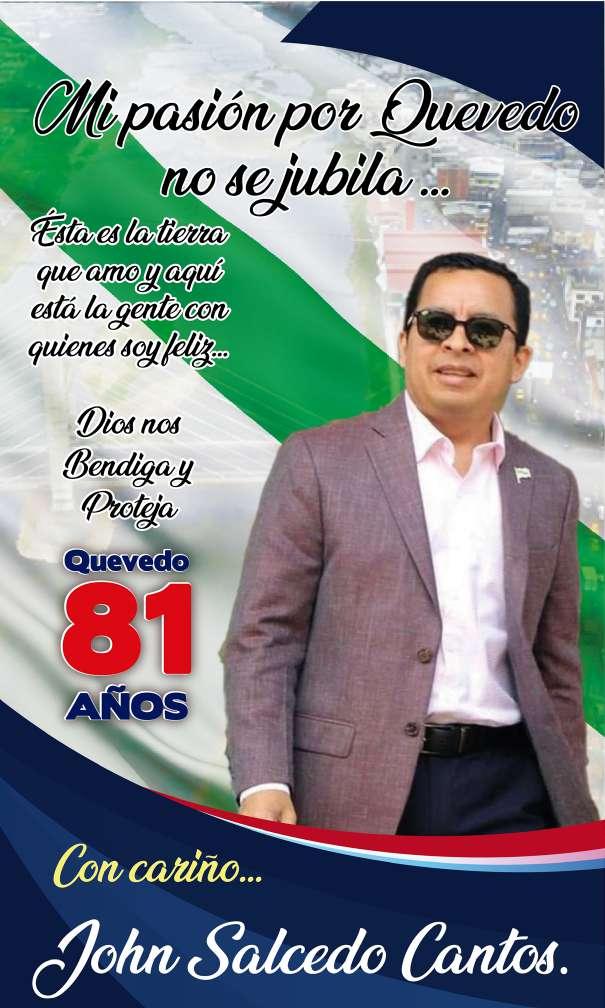 octubre, se llevará a cabo el desfile cívico militar, presidido por los estudiantes de los colegios de la ciudad, a partir de las 8:30 a.m. Posteriormente, se celebrará una sesión solemne en el auditorio de la Universidad Técnica Estatal de Quevedo, donde se espera la presencia de autoridades provinciales y locales. Durante este acto se condecorará a diversas personalidades que han con-