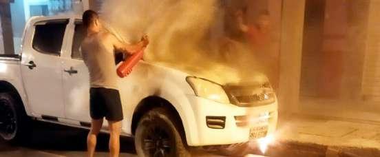 Babahoyo: Sujetos prenden fuego a una camioneta