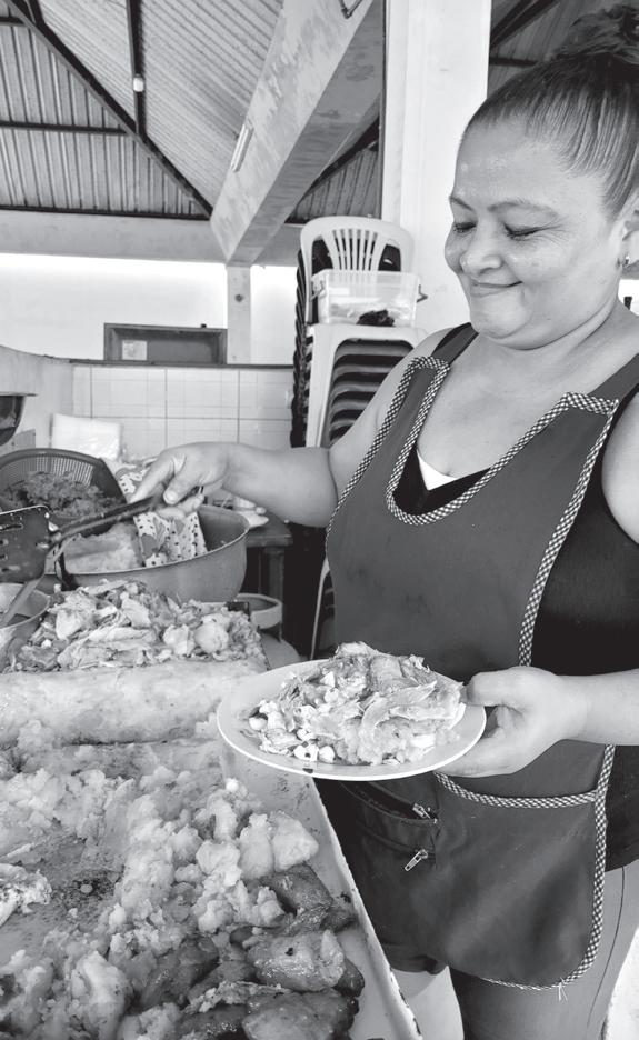 Marisol, apasionada de la cocina, lleva muchos años trabajando en este emblemático lugar. Junto con su jefa, quien lidera la preparación del hornado, Marisol se encarga de asegurar que cada plato sea una experiencia gastronómica inolvidable para los comensales.