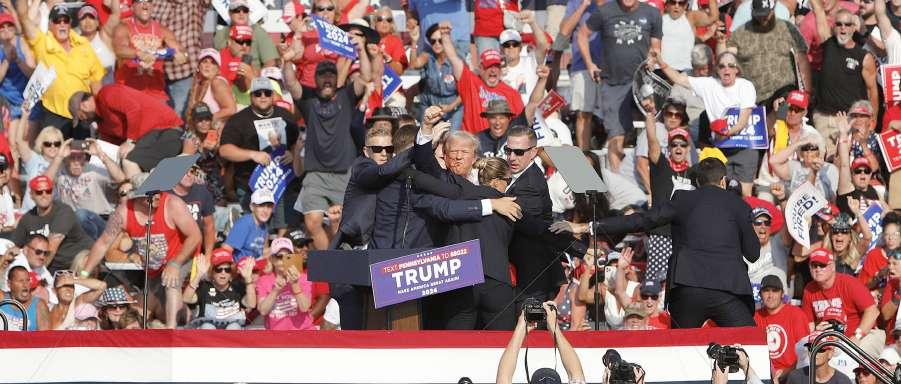 SUCESo. Trump fue sacado del escenario por el Servicio Secreto tras el atentado en su contra durante un mitin de campaña, el sábado 13 de julio de 2024. como cualquiera”.