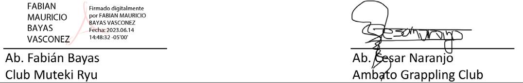 Se convoca quienes deseen formar parte de los Clubes Deportivos Especializados Formativos de Judo “Muteki Ryu” y “Ambato Grappling Club” a las asambleas para la constitución de los clubes. Se realizarán en Ambato, calles Shyris y Colorados, Gimnasio Élite 2do. Piso, el MIERCOLES 05 de julio del 2023 a las 18h00 para el club Muteki Ryu y a las 19h00 para el club “Ambato Grappling Club”. Información: clubmutekiryu@gmail. com y ORDENcsar_naranjo@yahoo.com.
