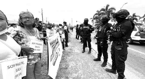 Los pacientes renales, portando carteles, exigieron al primer mandatario que agilice el pago de cerca de seis millones de dólares que el Ministerio de Salud Pública y el Instituto Ecuatoriano de Seguridad Social adeudan a las unidades de diálisis de la provincia.
