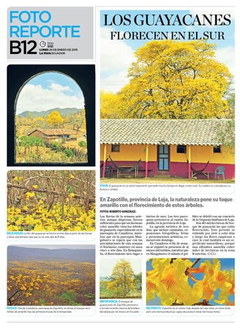 blico se deleitó con un concierto de la Orquesta Sinfónica de Loja. Son 40 mil hectáreas de bosque de guayacán las que están floreciendo. Este período se extiende por siete u ocho días y luego las flores empiezan a caer, lo cual también es un espectáculo maravilloso, porque una alfombra amarilla cubre miles de hectáreas en la zona fronteriza. (OGS)