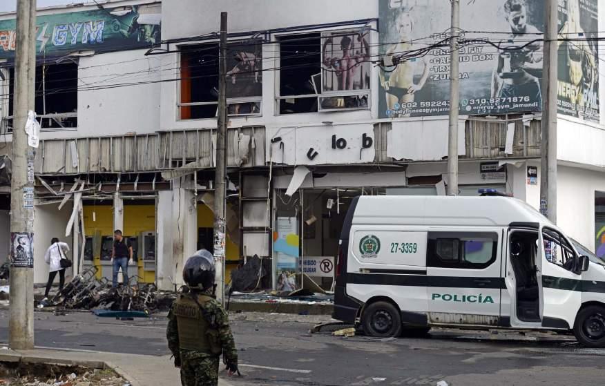ACCIONES. Investigadores de la Policía colombiana mientras recogen evidencias luego de una explosión en Jamundí en junio de 2024.