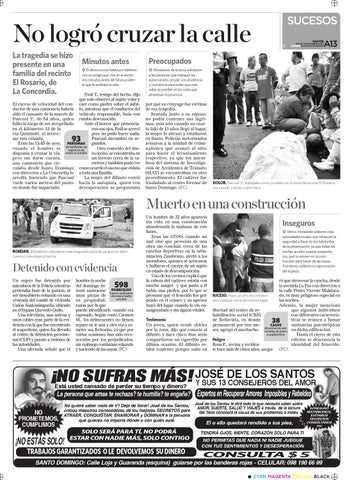ró que atravesar la cancha, desde la avenida La Paz con dirección a la calle Pedro Vicente MaldonaSUCESO. Hace un año encontraron do, es muy peligroso especial en otro cadáver cerca del mismo lugar. las noches. Además, la mujer mencionó que algunos individuos libertad del centro de recon diferentes caracteríshabilitación social (CRS) ticas se reúnen a fumar de Bellavista, en donde CASOS sustancias psicotrópicas permaneció por tres mepersonas aseses, agregó el muchacho. de sinadas de enero en dicha edificación. a septiembre. Hasta el cierre de esta edición se desconocía la Peligro identidad del fenecido. Rosa F., vecina y recidente hace más de cinco años, asegu- (PC)