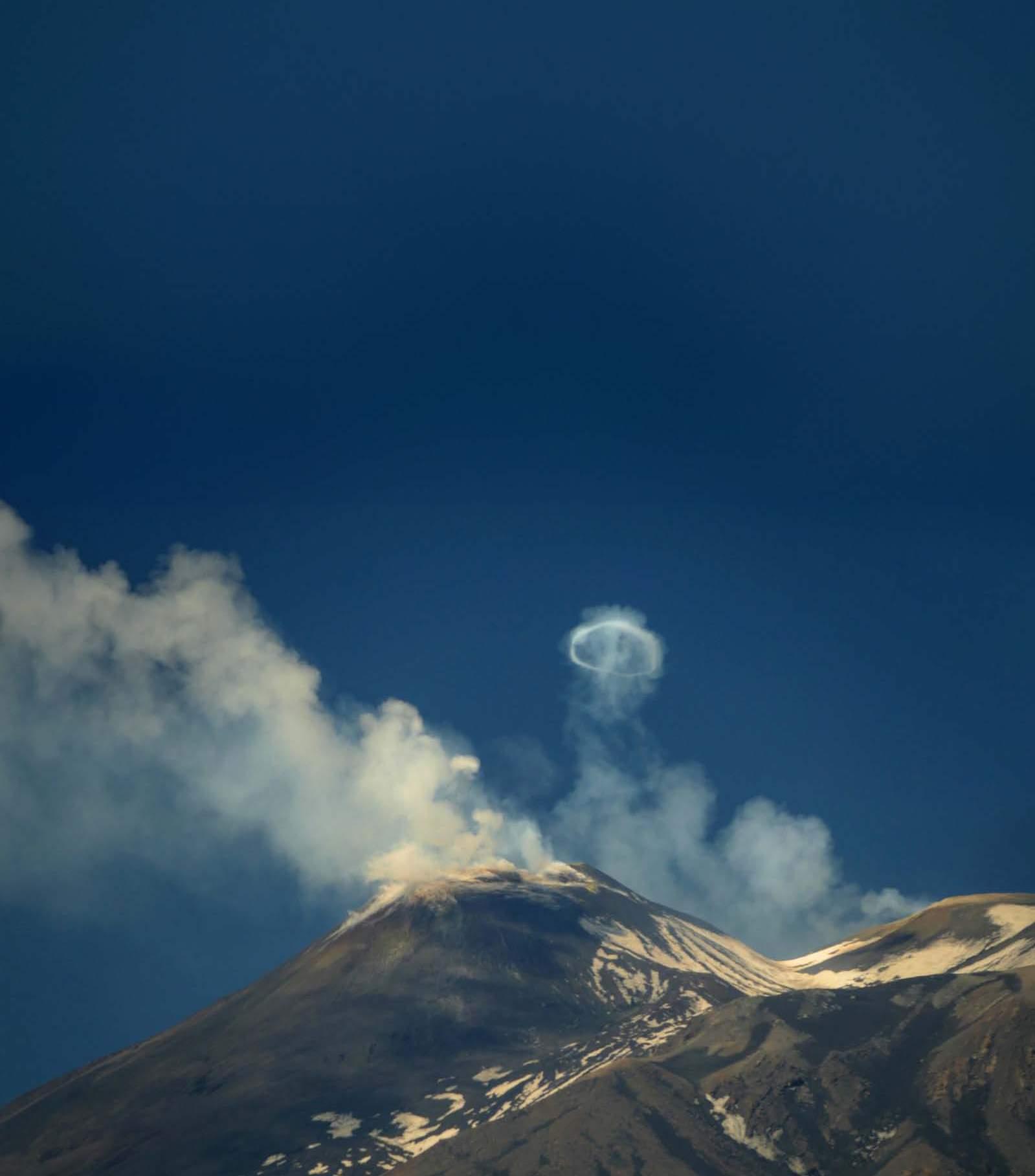 El volcán italiano Etna, el más activo del continente europeo, expulsó este 5 de marzo de 2024 a la atmósfera numerosos ‘anillos’ de humo, un fenómeno “extraordinario” que pudo verse desde las inmediaciones del cráter y la ciudad siciliana de Catania (sur). EFE