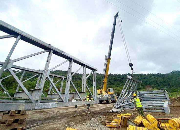 Los trabajos de armado del puente delta, que será ubicado sobre el río Lelia en el kilómetro 82 de la vía Alóag – Santo Domingo, registran un avance del 65%.