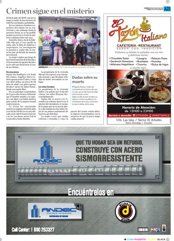 Era muy joven Según sus familiares a la fecha del crimen, Angélica Álava Cedeño apenas tenía 17 años y vivía con Abel Aldaz, un joven de 24 años de edad, con quien apenas llevaba 7 meses de haber formalizado una unión libre. En un principio sospechaban de él, pero ellos tienen evidencias que el hombre amaba a su esposa y sus hijos y no había motivos para actuar de la manera brutal contra la joven. La occisa fue encontraba muerta la mañana del 24 de julio a eso de las 09:00 en su casa ubicada en la calle 8 transversal seis y la Av. Los Incas, sector 2 de la cooperativa Santa Martha.