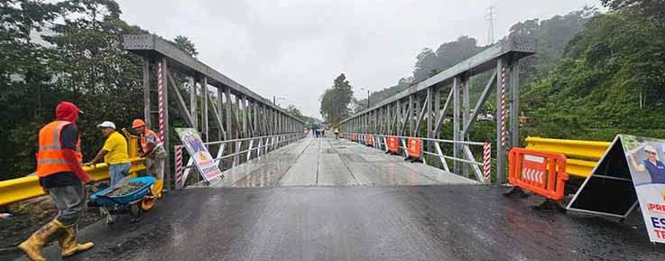 antecedente ° El puente antiguo colapsó el 1 de marzo de 2024. Posteriormente, el MTOP, Gobierno Provincial y Cuerpo de Ingenieros del Ejército trabajaron conjuntamente para ejecutar este proyecto vial.
