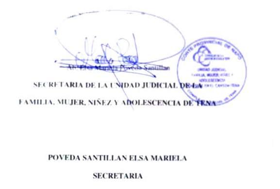 UNIDAD JUDICIAL DE LA FAMILIA, MUJER, NIÑEZ Y ADOLESCENCIA DEL CANTON TENA, PROVINCIA DE NAPO