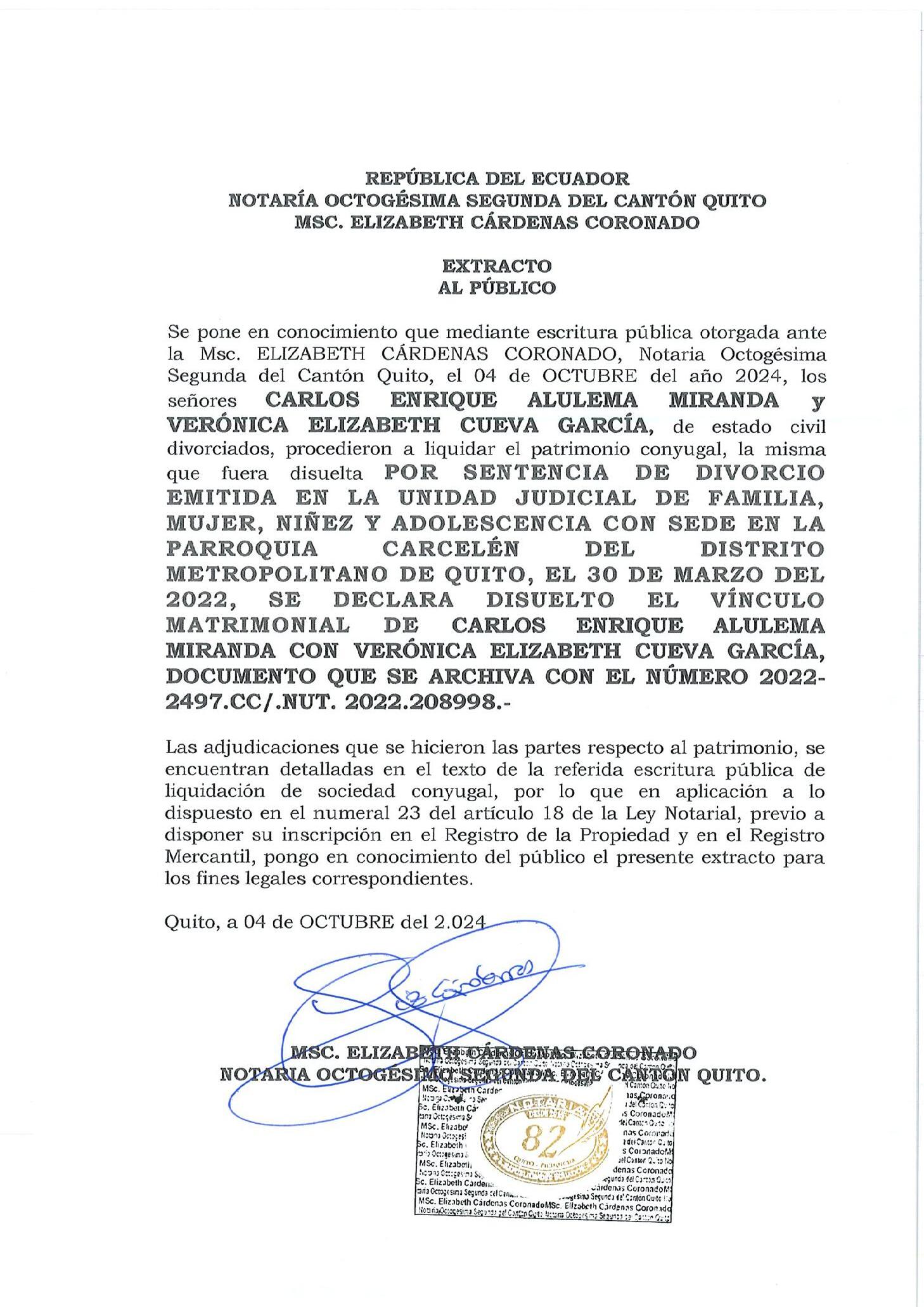 COOPERATIVA OSCUS LTDA. La Cooperativa de Ahorro y Crédito OSCUS Ltda., comunica el extravío/sustracción del Certificado de Depósito a Plazo No 1421576201, perteneciente a ALDAZ ORTIZ BELGICA ALICIA, por lo que se ha procedido a su bloqueo, en consecuencia, la Cooperativa no asume ninguna responsabilidad, quién considere tener derecho sobre dicho documento deberá presentarse en las Oficinas de la Cooperativa en el plazo de 3 días, contados desde la fecha de la publicación de este aviso. Ambato, 09 de octubre de 2024