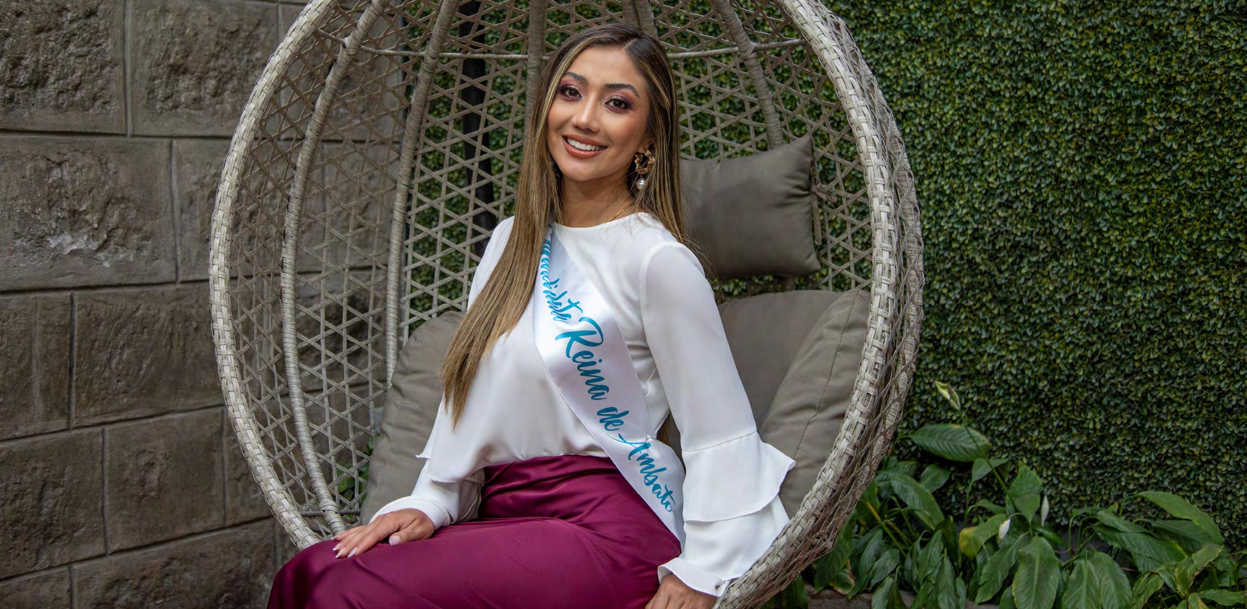 Thaís Nicole Vásconez Miranda tiene 24 años y como candidata a Reina de Ambato representa al barrio Las Acacias.