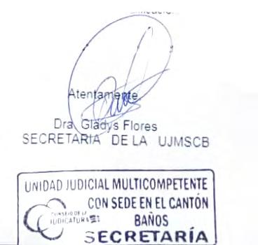 UNIDAD JUDICIAL MULTICOMPETENTE CON SEDE EN EL CANTÓN BAÑOS,PROVINCIA DE TUNGURAHUA. Baños De Agua Santa, miércoles 16 de octubre del 2024, a las 11h13.VISTOS: Avoco conocimiento de la presente causa en mi calidad de Juez titular de esta unidad Judicial.En lo principal a la demanda de fijación de pensión alimenticia con presunción de paternidad presentada por la señorita RAMOS BENAVIDES GABRIELA KATHERINE se la califica de clara y completa por reunir los requisitos previstos por los arts.142 y 143 del Código Orgánico General de Procesos COGEP, por lo que se la admite at rámite en procedimiento sumario previsto en los arts. 332 y 333 numeral 3 del COGEP.sustituido por el Art. 55 de la Ley Orgánica Reformatoria del COGEP, publicada en el R.O.No. 517 del miércoles 26 de junio del 2019 reformado Art. 55, 56 y 57 del código procesal invocado. Téngase en cuenta el casillero judicial y correo electrónico que señala para futuras notificaciones y la designación de su abogada defensora. Por cuanto la accionante ha dado cumplimiento a la declaratoria bajo juramento de la imposibilidad de determinar la residencia o domicilio del demandado y que se han realizado todas las diligencias necesarias para tratar de ubicarlo, de conformidad a lo dispuesto en el Art. 56 numeral 1, del Código Orgánico General de Procesos, se dispone que se cite al demandado señor SANCHEZ BENAVIDES EDISON RODRIGO, con el auto de calificación, en uno de los diarios que se editan en la ciudad de Ambato, para lo cual por secretaria procédase a entregar el extracto correspondiente, debiendo la demandada en el término de diez días de citada legalmente conteste la misma demanda de conformidad con lo previsto por los arts. 151 y 152 Ibidem. Tómese en cuenta los anuncios de prueba y agréguense a los autos la documentación que presenta; por cuanto la actora en el formulario de demanda declara que no se encuentran en su poder los siguientes documentos y que requiere el auxilio del órgano jurisdiccional para que se ordene la entrega de los mismos, con fundamento en el art. 159 inciso tercero Ibidem se dispone que se confieran los oficios que solicita; De conformidad con lo que señalan el art. 332 numeral 4) inciso segundo del COGEP, art. innumerado 9 de la Ley Reformatoria al Título V, Libro II del Código Orgánico de la Niñez y Adolescencia y la tabla de pensiones alimenticias mínimas vigente, fijase en la suma de S/. 135,65 dólares de los Estados Unidos de Norteamérica equivalente al 29.49% del Salario Básico Unificado Vigente, la pensión alimenticia provisional que el demandado debe suministrar a partir de la presentación de la demanda en beneficio la niña STEPHANY JULIETT RAMOS CHUGCHO mediante pagos que se realizarán por adelantado, dentro los cinco primeros días de cada mes, en la cuenta de ahorros que señala la actora en el formulario de demanda, debiendo la Sra. Pagadora de esta Unidad Judicial proceder a realizar el registro en el sistema SUPA y generar el número de tarjeta, indicándose que ésta será la única forma de cancelación de pensiones, caso contrario los pagos no se verán reflejados en el sistema que esta judicatura mantiene lo que podría generarle perjuicios posteriores al alimentante, de igual manera la actora madre de la alimentada deberá usar esta cuenta exclusivamente para el pago de pensiones alimenticias a fin de evitar incidentes por otros depósitos.- Practíquese el examen comparativo de los patrones de bandas o secuencias de ácido disoxirribunucleico ADN que se solicita, se designará perito y señalará día y hora para la toma de muestras una vez que el demandado haya sido citado legalmente, diligencia a la que deberán concurrir bajo prevenciones de ley la actora RAMOS BENAVIDES GABRIELA KATHERINE, la niña STEPHANY JULIETT RAMOS CHUGCHO y el accionado SANCHEZ BENAVIDES EDISON RODRIGO quien deberá cubrir el costo de este examen.-CÍTESE Y NOTIFÍQUESE.UNIDAD JUDICIAL MULTICOMPETENTE CON SEDE EN EL CANTÓN BAÑOS,PROVINCIA DE TUNGURAHUA. Baños De Agua Santa, miércoles 30 de octubre del 2024, a las 09h29.El escrito de este folio presentado por la parte actora agréguese a los autos, téngase en cuenta su contenido asi como el nuevo casillero que señala para recibir sus notificaciones y la autorización que da a su abogado patrocinador para que suscriba en su defensa y en lo principal por cuanto por un lapsus calami, se ha hecho constar enel auto de entrada que antecede de forma errada el nombre de la actora como GABRIELA KATHERINE RAMOS BENAVIDES, cuando lo correcto es GABRIELA KATHERINE RAMOS CHUGCHO, a fin de evitar incidentes que puedan afectar la tramitación futura de la causa, se corrige este particular y se dispone en lo demás estar con lo dispuesto en el referido auto de calificación.-.- Notifíquese.