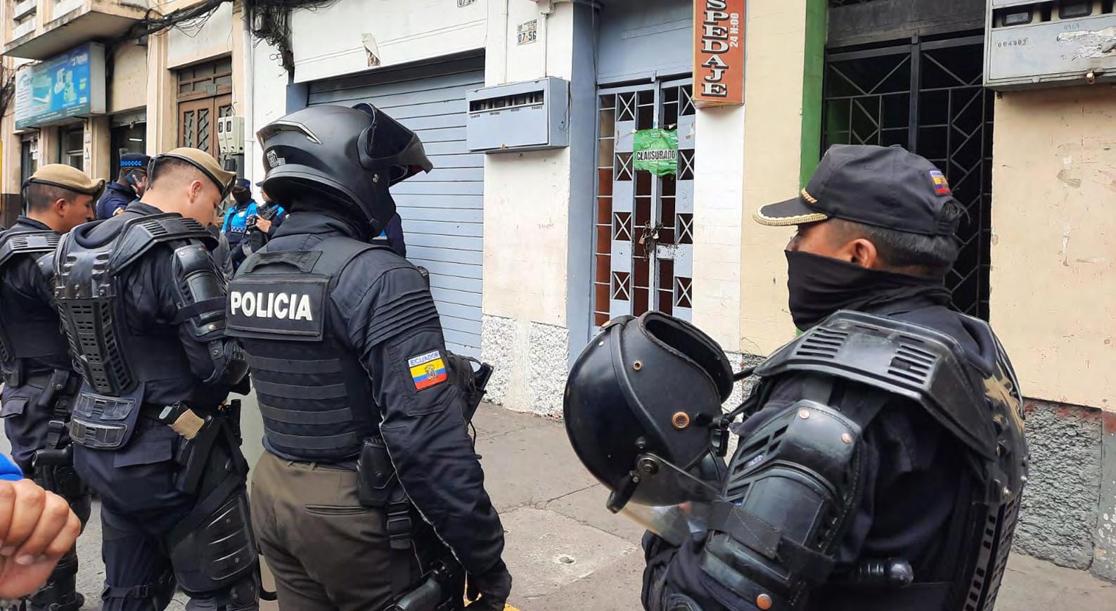 El jueves 6 de abril de 2023 en las calles Espejo y Juan Benigno Vela en el sector del mercado Modelo en el centro de Ambato, Jhon Jairo G. V. y otro sujeto fueron detenidos por la Policía luego de ser acusados de robarle el celu-