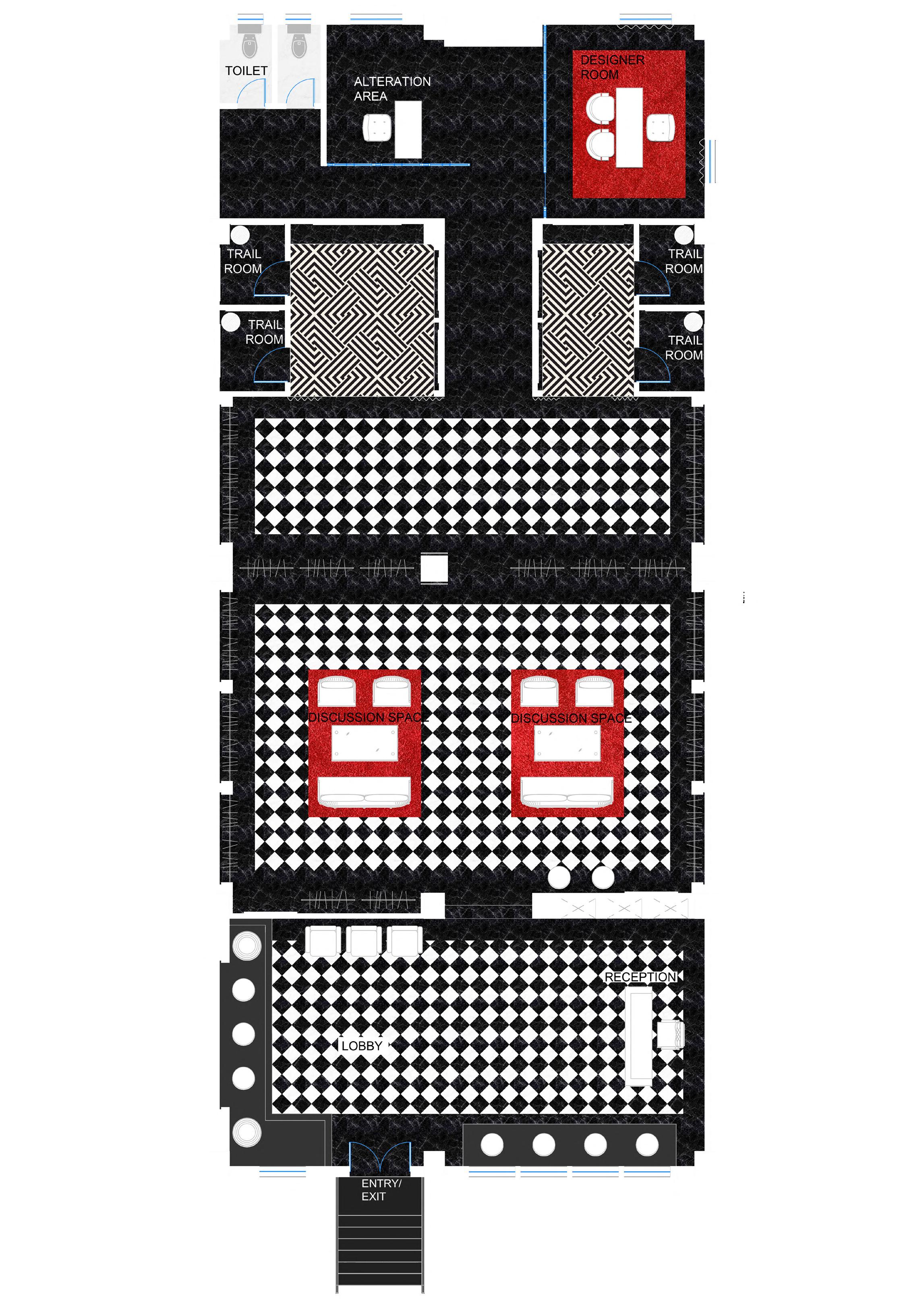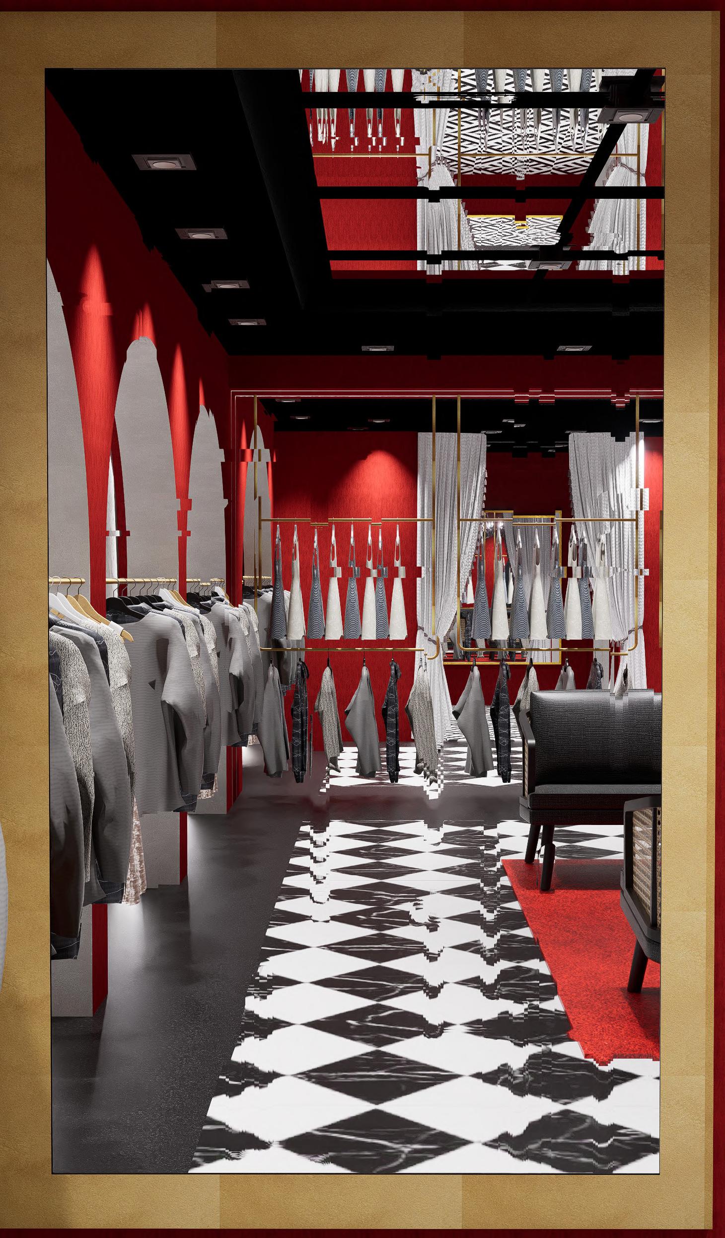 The boutique is designed based on illusions aslo the elements of kolkata architecture have been added In the design. Mainly the: