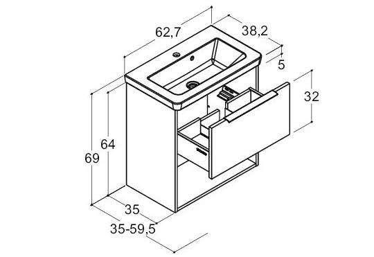 3.2 60 cm peilikaappi, jossa integroitu valaisin ja allasvalo