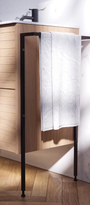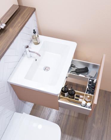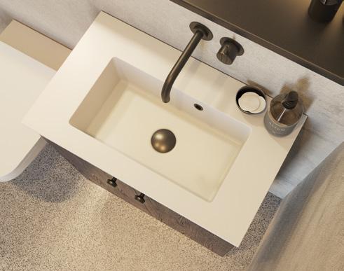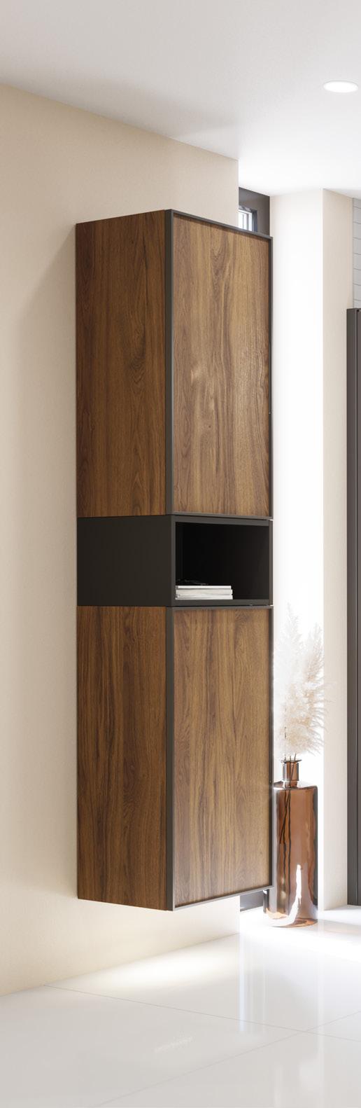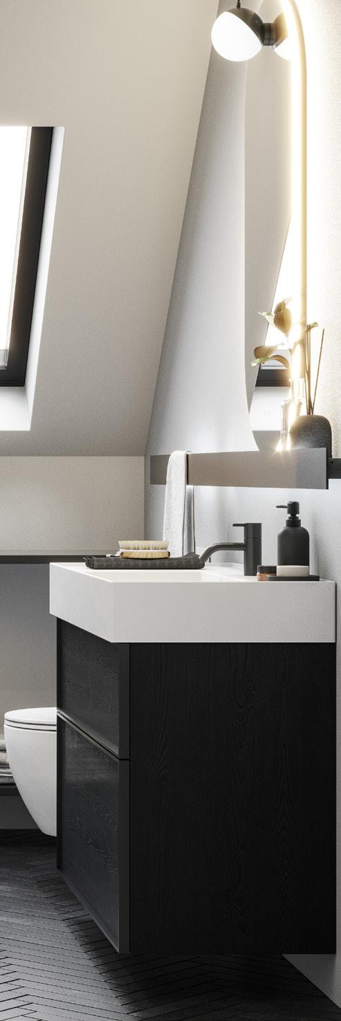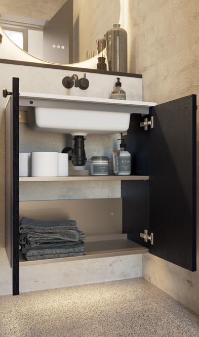 Intensiivinen ja tyylikäs muotoilu, jossa mustan tammen värinen allaskaappi tarjoaa runsaasti tilaa välttämättömälle, kun taas Minoren minialtaan terävyys sopii täydellisesti tähän kokonaisuuteen.