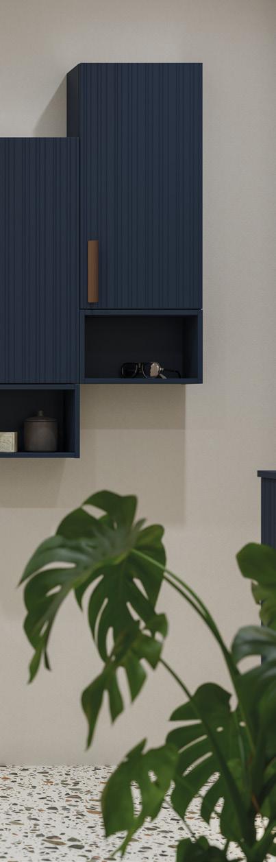 Etuosat sijaitsevat sivujen sisäpuolella, saatavilla kaarevana, uritetulla etuosalla. 21 mm:n MDF-puukuitulevyä, lakattu kosteudenkestävällä kaksikomponenttilakalla. Uritetut etuosat mattavalkoisena ja erikoisväreissä 19 mm:n MDF-puukuitulevyä ja pinnoitettu kosteudenkestävällä kaksikomponenttilakalla. Vaihtoehtoisesti pehmeämpi vaihtoehto on saatavilla. Nämä etuosat ovat 22 mm:n MDF-levyä, joissa on 20 astetta taivutetut reunat ja integroidut vetimet. Viimeistely on tehty kosteudenkestävällä kaksikomponenttilakalla. Etuosat peittävät kaapin pystyseinät edessä.