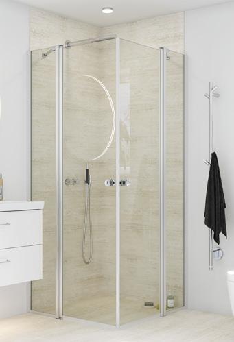 Klassinen ja erittäin suosittu suihkunurkka kahdella ovella, jotka kääntyvät niin sisään kuin ulospäin. Kun ovet käännetään sisäänpäin, kylpyhuoneeseen saadaan lisää lattiatilaa ja avaruutta.