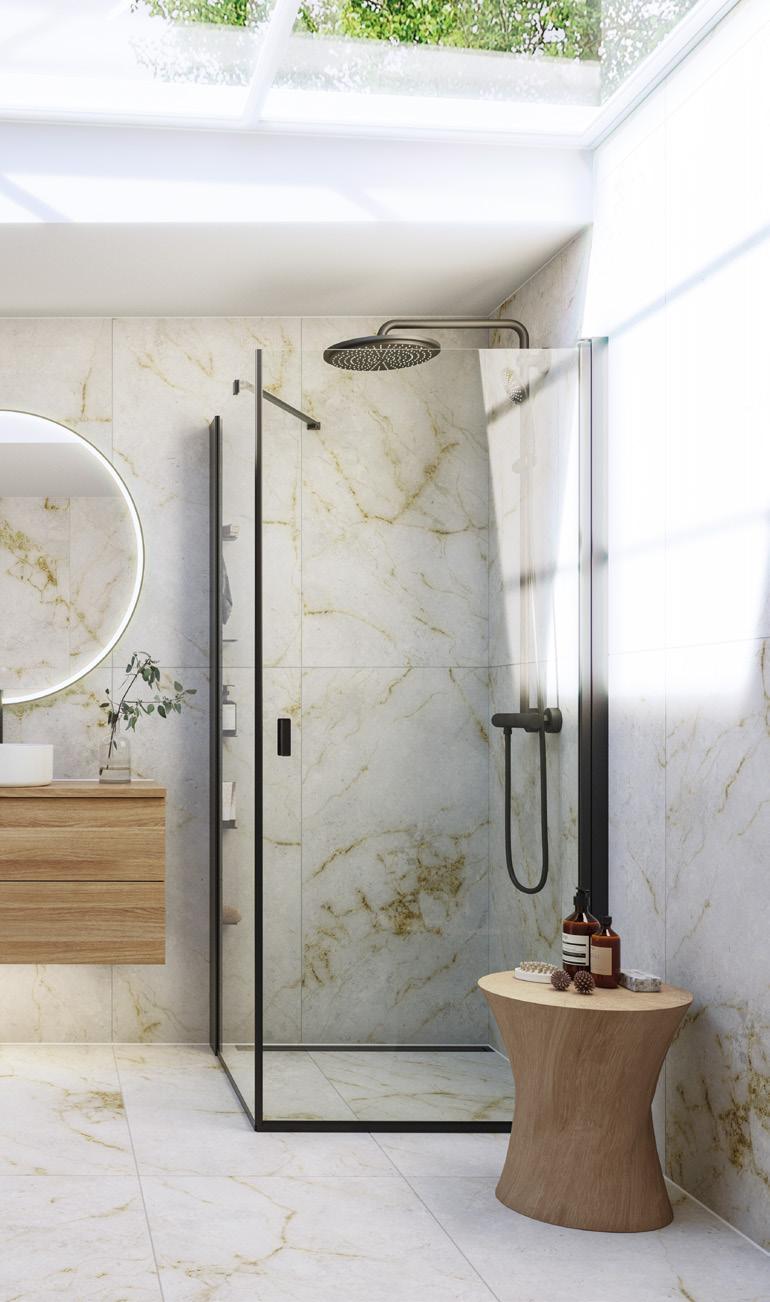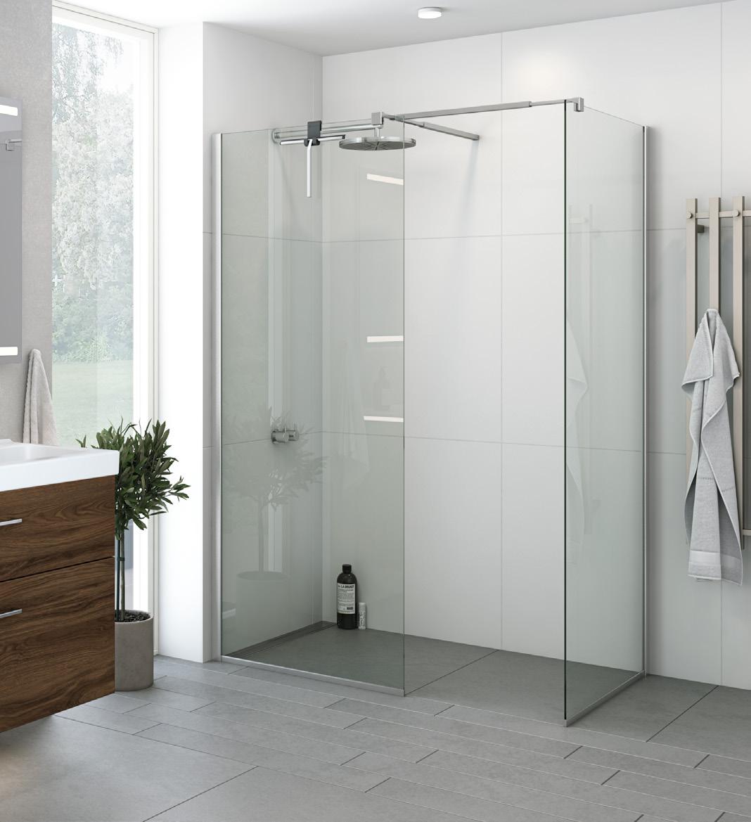 200 cm korkeat suihkuseinät sopivat hyvin yhteen myös kattosuihkun kanssa.