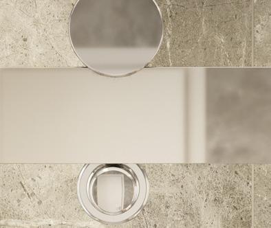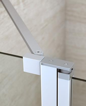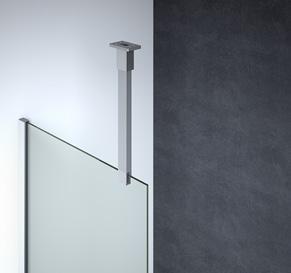 Kiillotettua, ruostumatonta terästä, peitekorkit kromattua ABSmateriaalia. Suihkukalusteratkaisuihin, joissa on kaksi kiinteää seinää, toimitetaan 2 tukitankoa vakiona.