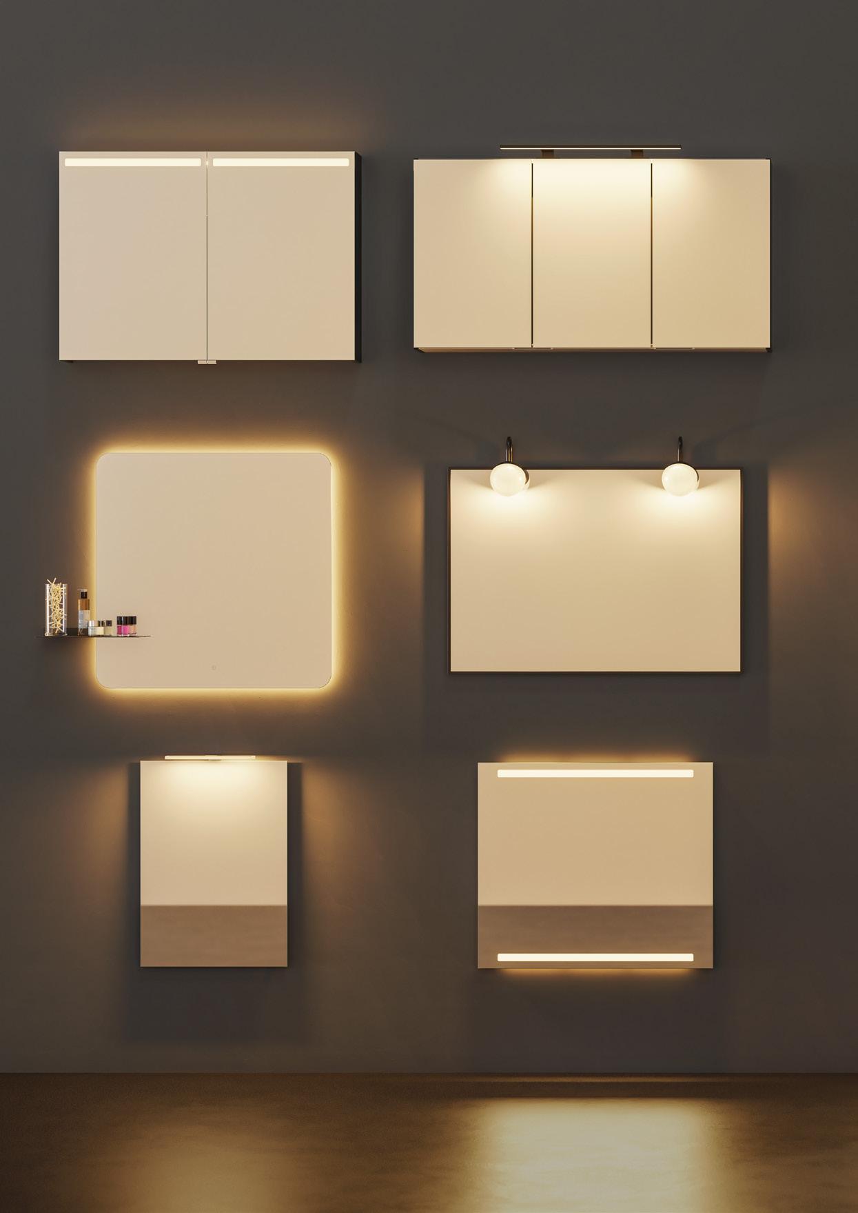 Katsele itseäsi luonnollisessa valossa ripsiväriä lisätessäsi tai hiuksia kihartaessasi. Näin et saa ikäviä yllätyksiä siirtyessäsi päivänvaloon. Olemme ratkaisseet haasteen yhdistämällä erilaisia laadukkaita peili- ja valaisinratkaisuja. Seuraavassa näet eri mallimme. Huomaa, että kaikkia yhdistelmiä on saatavilla erikokoisina, jotka vastaavat kalusteiden leveyttä.