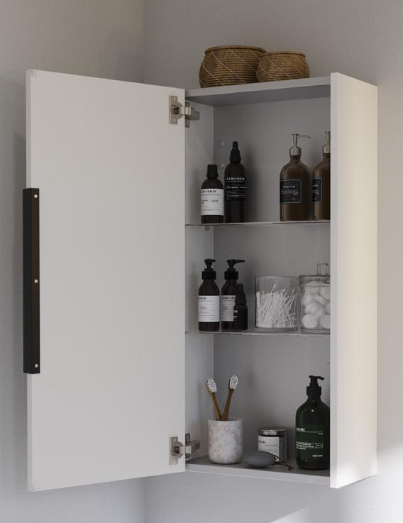 Mido-kylpyhuonekalusteet on valmistettu melamiinipäällysteisestä lastulevystä. Jos valitset valkoisen mattapintaisen pinnan, kalusteen etupuoli on lakattua MDF-levyä.