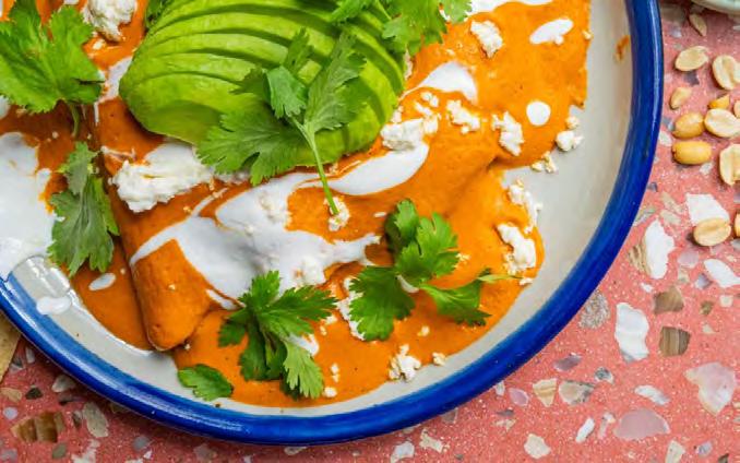 - Rellene cada tortilla bañada en salsa con el relleno de champiñones y, a continuación, dóblelas. Vierta salsa extra sobre la parte superior de las tortillas rellenas.