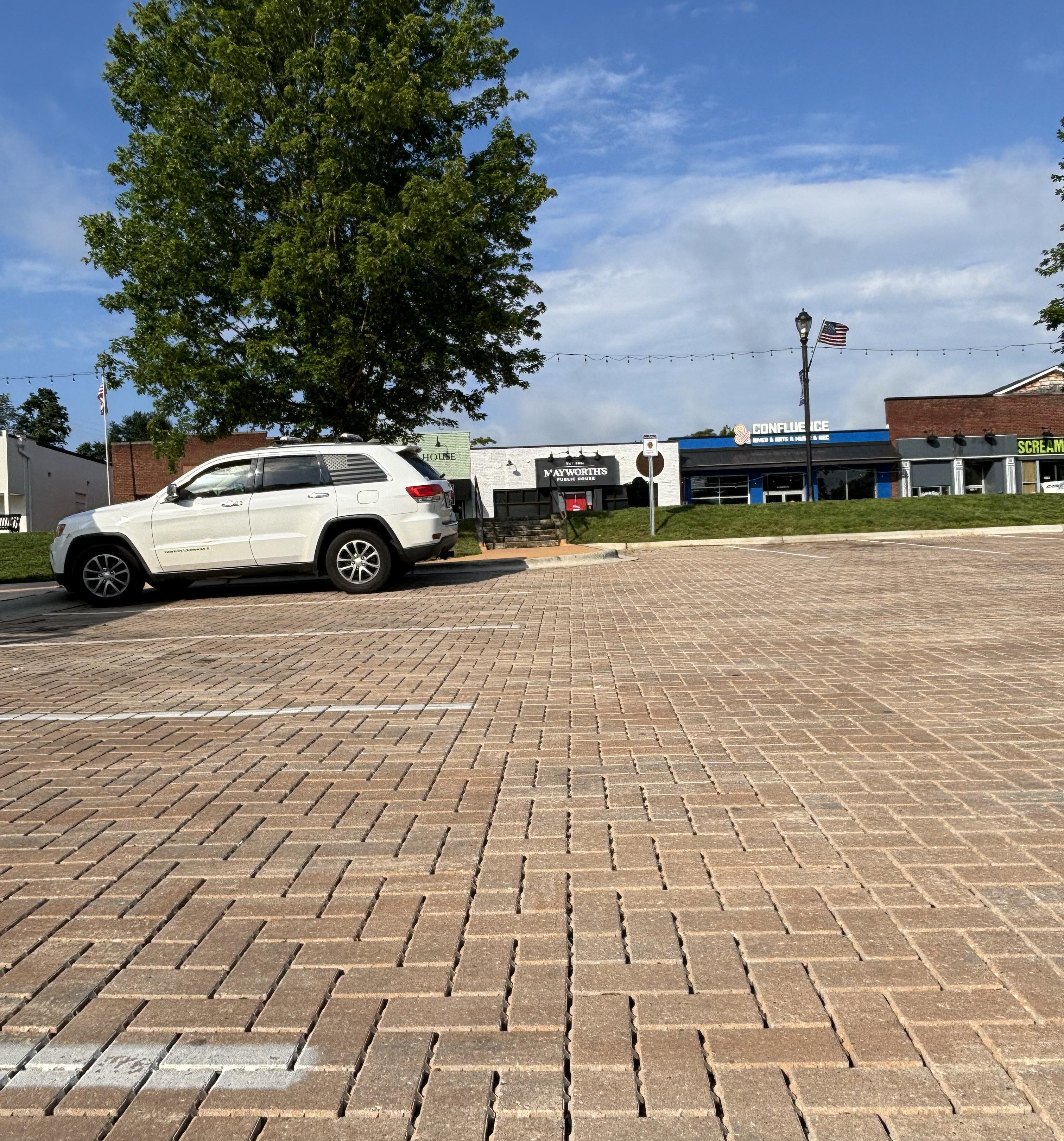 • Recessed parking via “bumpouts” based on parking study
