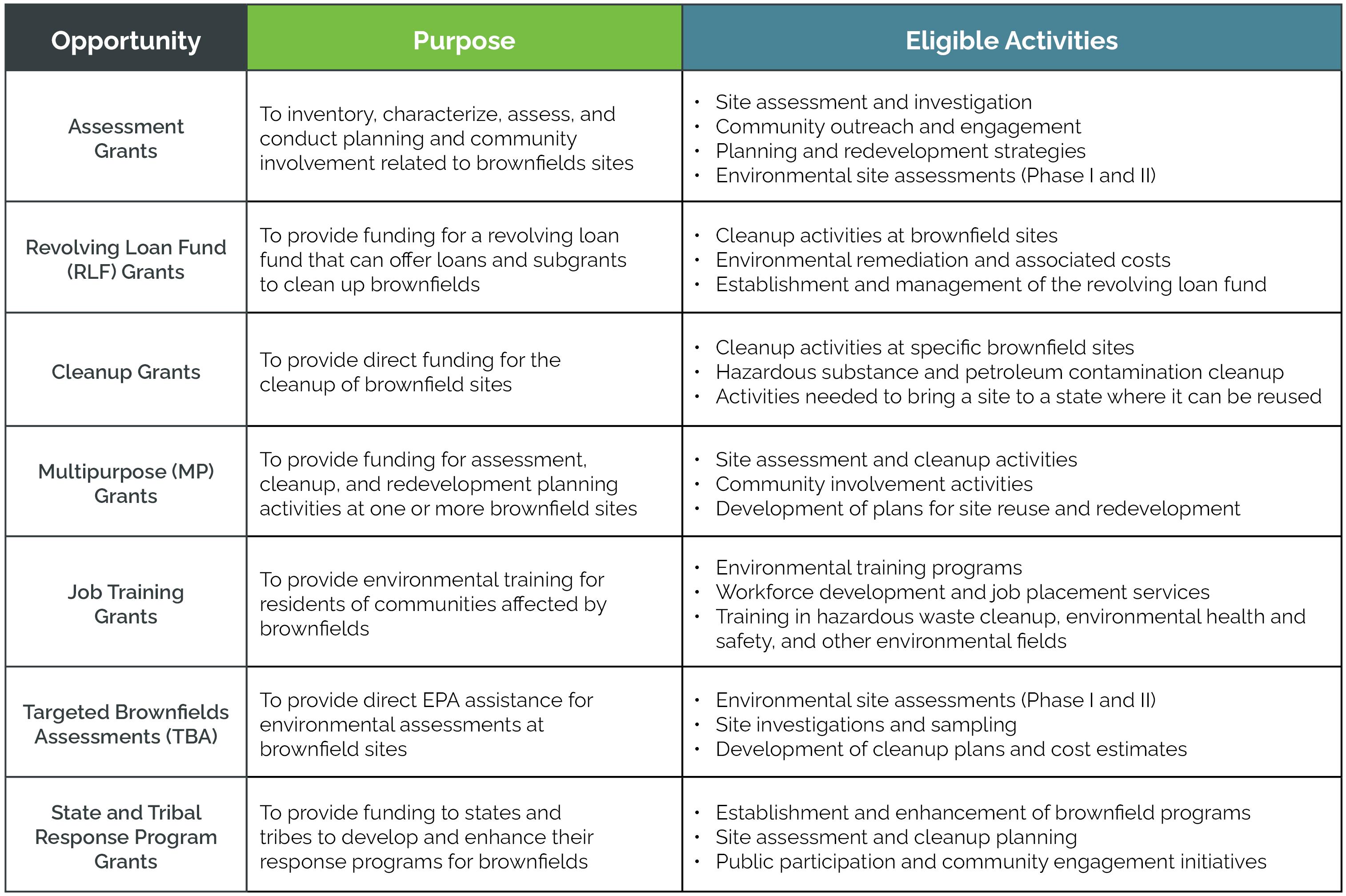 and cleanup to community engagement and job training, ensuring comprehensive support for revitalizing contaminated properties.