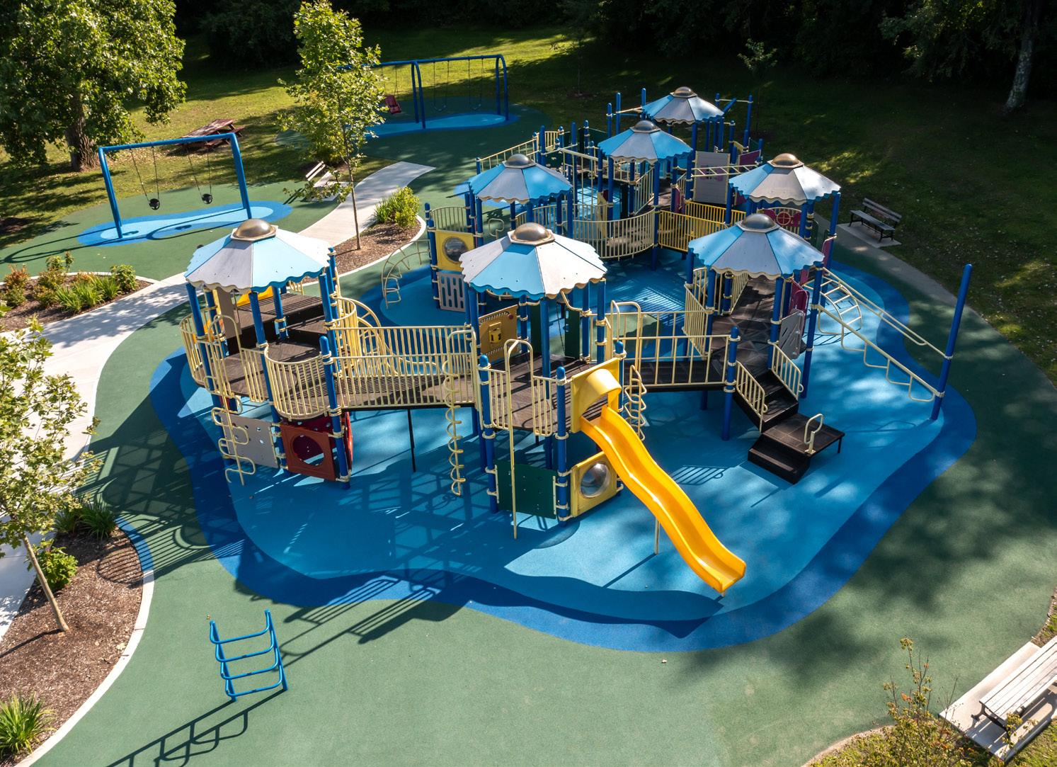 Synthetic turf is another durable playground surface choice that offers shock absorption, accessibility, and the advantage of year-round use. Both surfaces help create safer, more inclusive play environments for the community.