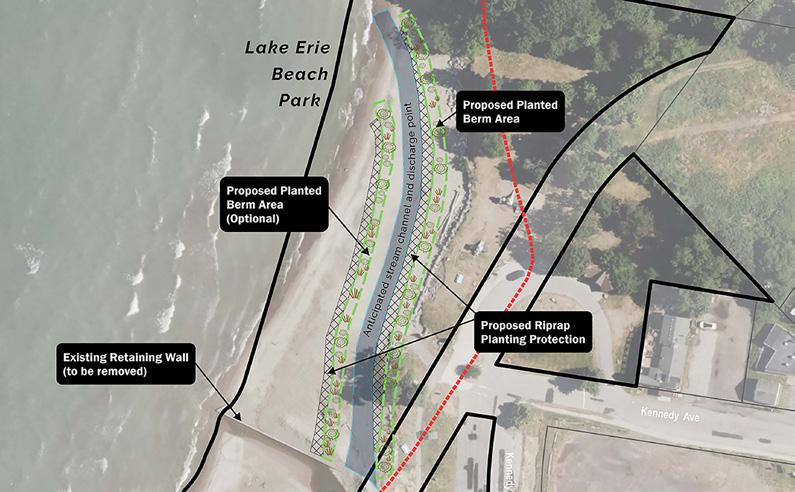 properties along Muddy Creek at Lake Erie Beach Park and convert them into undeveloped floodplains, which could provide natural recreational spaces while improving flood management. The feasibility study also recommended incorporating educational signage in these recreational spaces to help the public understand their purpose and flood management benefits.