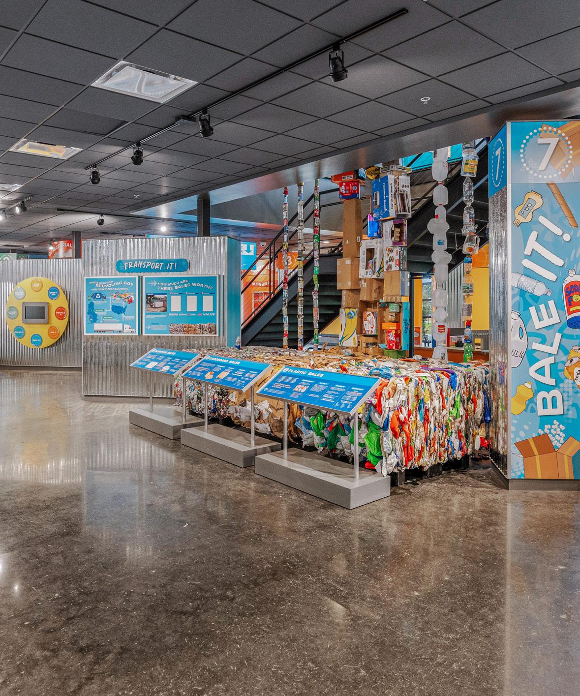 The Waste & Recycling Adventure Center boasts 20 interactive stations plus a mezzanine viewing platform— bringing the recycling journey to life for the community.