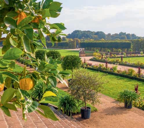 Bäumchen mit Zitrusfrüchten schmücken heutzutage auch wieder manch anderen Park in Deutschland. So beleben im Barockgarten Großsedlitz nahe der sächsischen Landeshauptstadt Dresden seit 1996 neue Zitrusbäume aus Italien die lange Tradition der dortigen Orangerie. Kurfürst August der Starke, der den Garten 1723 nach französischem Vorbild umgestalten ließ, hegte wie so viele seiner Standesgenossen eine Leidenschaft für Orangenbäume, verhießen sie doch nichts Geringeres als ewige Jugend. Am 3. und 4. Juni 2023 werden im Barockgarten die 9. Sächsischen Zitrustage gefeiert.