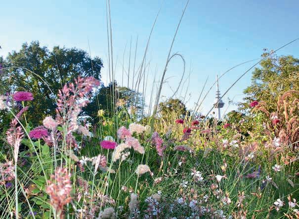 Experimentierfeld, Blumenschau und Sommerfest in einem soll die Bundesgartenschau 2023 in Mannheim sein. Vom 14. April bis zum 8. Oktober lädt die Stadt am Neckar auf gleich zwei zentrale Schauplätze ein: den modernisierten Luisenpark und das Spinelli-Gelände – eine frühere US-Militärkaserne. Rund 5.000 geplante Veranstaltungen, darunter die Auftritte von Bülent Ceylan und Joris, ein JoyFleming-Musical, der Jazzclub von Thomas Si ing, Lesungen, Theater, Workshops oder ein umfangreiches Kinderprogramm, versprechen einen großartigen Sommer. Als echtes Highlight schwebt eine Seilbahn in luftiger Höhe und verbindet den Luisenpark mit dem Spinelli-Gelände. Etwa sieben bis acht Minuten dauert die Fahrt mit bester Aussicht auf den Neckar, die Maulbeerinsel, den Sportpark und den markanten Panoramasteg. Der über rund 43 Meter freitragende Steg ragt über das Augewässer, das mit einer Wasser äche von 1,6 Hektar Lebensraum für zahlreiche Tier- und P anzenarten scha t.