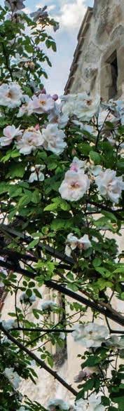 Mitte angeordnet sind, wachsen neben Küchenkräutern auch Duft-, Heil- und Symbolp anzen, wie Elke Lenschow vom Klosterverein Rehna erklärt. Und obwohl man sich den ö entlichen, mit kleinen Schildern markierten Garten auch auf eigene Faust anschauen kann, lohnt es sich, eine Führung mitzumachen. „In diesem kleinen Quadrat Garten stecken unglaublich viele Geschichten und altes Wissen“, sagt Lenschow und lächelt stolz.