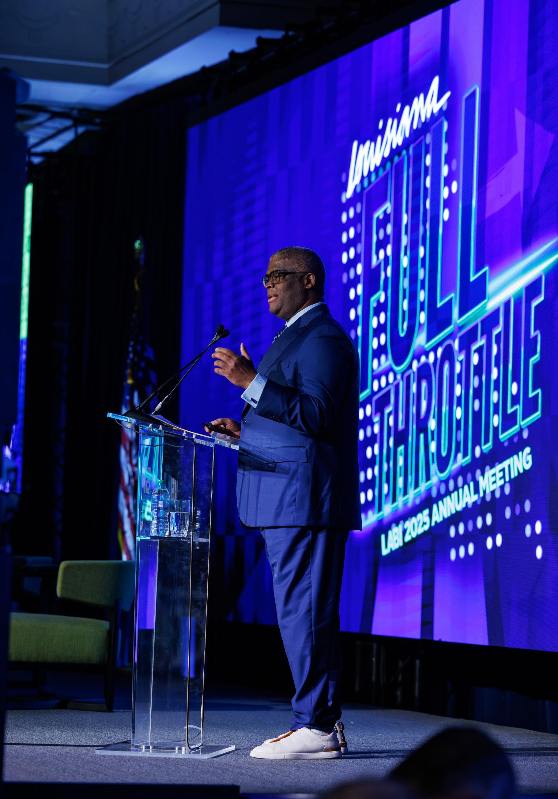 LABI HOSTED ITS 2025 Annual Meeting on February 19 at the Crowne Plaza. The event’s theme, “Louisiana Full Throttle,” underscored LABI’s unwavering commitment to maximizing opportunities to address challenges head on and secure a better future for our state. The meeting’s keynote speaker was Charles Payne, host of Making Money with Charles Payne on Fox Business. The day also included a panel discussion addressing “Energy Outlook 2025 and Beyond.” The LABI VIP Member & Legislator Reception took place the evening before the meeting at the LABI Center for Free Enterprise.