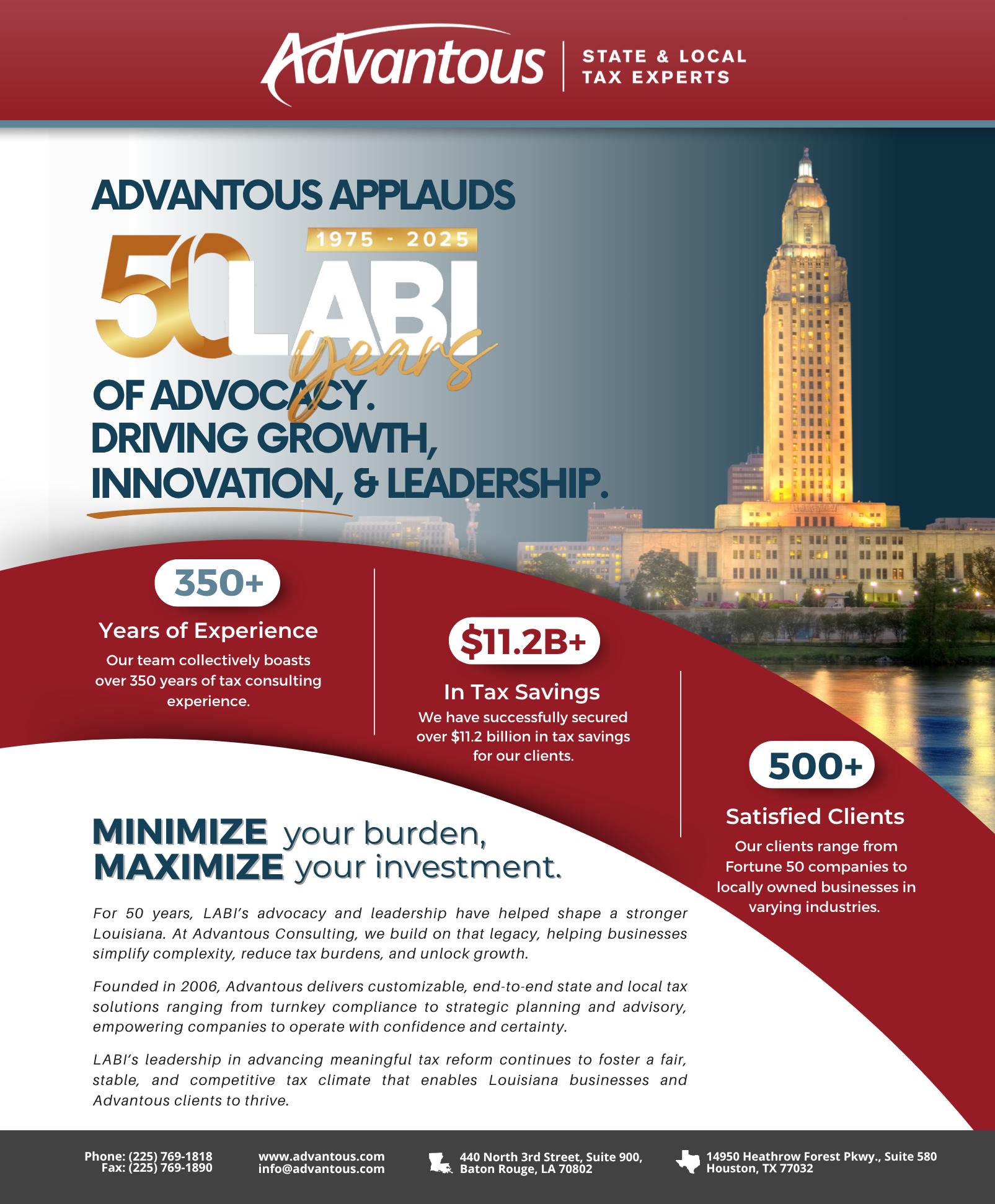 THIS YEAR LABI CELEBRATES a remarkable milestone—50 years as the unwavering voice for Louisiana’s entrepreneurs, innovators and job creators.